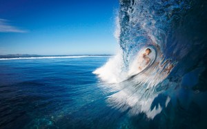 Surf’s uP! Posted on February 9, 2014 by mightymasai Female surfer in the tube of a breaking wave, Fiji